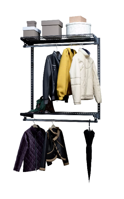 Гардеробные системы Титан GS удобное, функциональное и мобильное решение для хранения вещей в различных помещениях. Система собирается в разных комплектациях, что позволяет подстраивать ее под размеры помещения и ориентироваться на личные пожелания по расположению отдельных элементов.