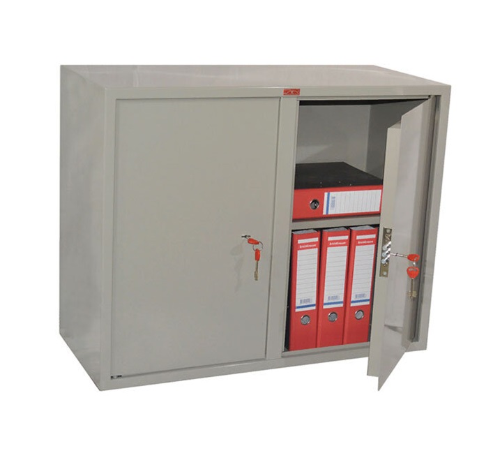 Бухгалтерский шкаф КБС-09 предназначен для хранения офисной и бухгалтерской документации, электронных носителей информации, учредительных документов. Представляет собой цельносварную металлическую конструкцию прямоугольной формы, соединение элементов которой выполнены методом сварки сплошным швом по контуру прилегания элементов. Корпус и двери шкафа изготовлены из стального листа толщиной 1,5 мм, двери изнутри усилены панелью коробчатого сечения листа толщиной 0,8 мм. В двери шкафа установлен врезной 8-ми сувальдный замок Про Сам. Шкаф КБС-09 комплектуется одной стационарной полкой. Шкаф окрашен полимерной порошковой краской серого цвета. Поставляется в собранном виде.