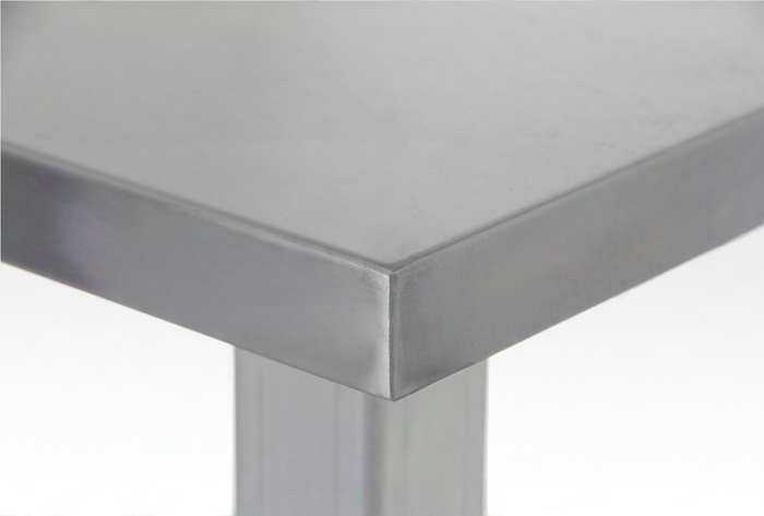 Столешница изготовлена из пищевой шлифованной нержавеющей стали, толщиной 0,8 мм. Высота столешницы 30 мм. Установлена усиленная подложка из ЛДСП толщиной 15 мм. Безопасное исполнение кромки столешницы.