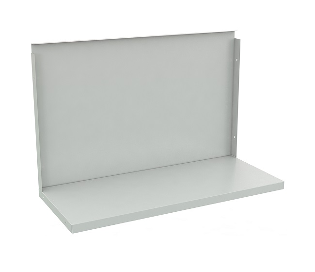 Полка и стенка Wsh 180/2 предназначена для безтумбового верстака длиной 2000 мм. Соединяем планкой и косынкой или три опоры, две полки и стенка. Полка выдерживает нагрузку 50 кг. Цвет серый