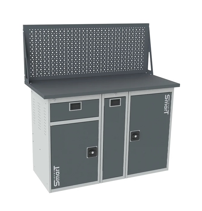 Дополнительно на верстак можно установить: перфорированный экран SMART 1280, комплект освещения SMART, аксессуары на экран SMART, возможна установка системы мастер ключ.