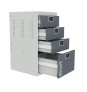Выдерживает равномерно-распределенную нагрузку на верстак - 1000 кг, на тумбу - 300 кг, на полку - 60 кг, на выдвижной ящик -30 кг, на перфорированный экран - 50 кг.
