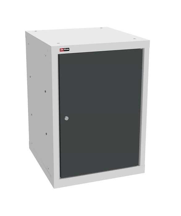 В комплектацию верстака входит: столешница ВЛ-К 150, полка и стенка ВЛ-К, две тумбы ВЛ-К-010. Столешница выполнена из фанеры (24 мм) с покрытием из оцинкованного листа металла. Тумба ВЛ-К-010 комплектуется двумя полками и дверью. Тумба закрывается центральным ключевым замком (50 000 циклов).