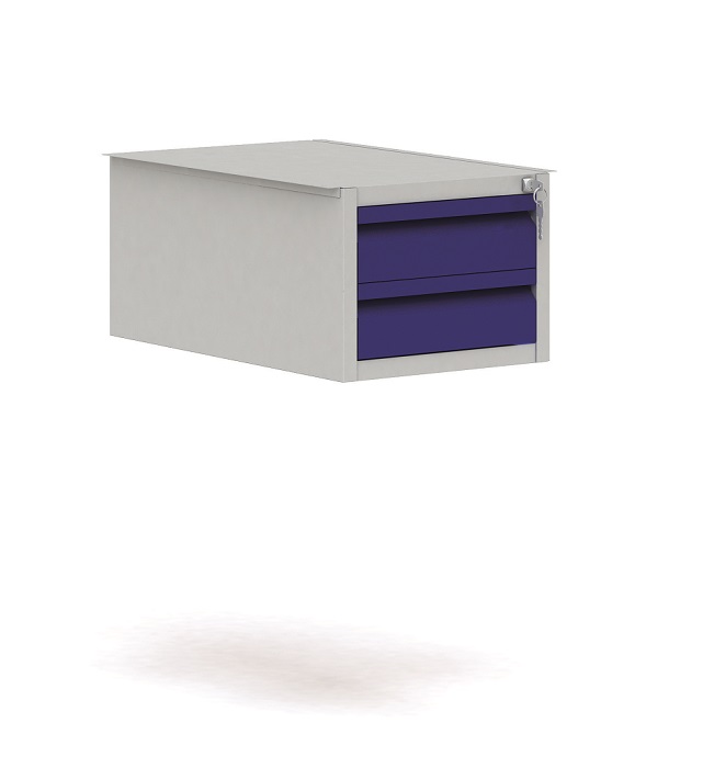Подвесная тумба-ящик Т-ВПЭ предназначена для хранения вещей, инструментов и оснастки в производственных помещениях. гаражах, мастерских. Используется для установки на верстак ВП-Э или как самостоятельный элемент металлической мебели. Состоит из двух выдвижных ящиков, запирающихся на центральный замок. Максимальная грузоподъемность полки тумбы-ящика - 30 кг. Цвет: корпус - серый Ral 7035, ящики - синий Ral 5002. Поставляется в собранном виде